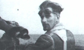Adalbert Schnee auf der Brücke seines Bootes |