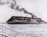 sich das Schiff über, erst glitten die Flugzeuge vom Flugdeck ins Wasser, dann rutschten